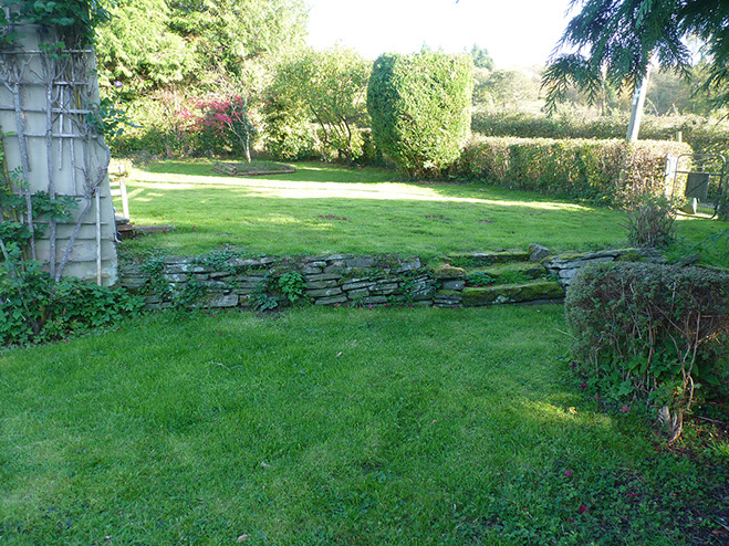 The property is approached from the public highway over a part concrete surfaced driveway, which belongs to the property, but over which adjacent property owners have a right of way. A short spur off the driveway, just above the dwelling, is shaded by well-established conifers and provides parking space for at least two vehicles. There is a pedestrian gateway into the gardens, which are down to lawn on various levels enclosed by fences and hedges with various shrubs, stone features and a small feature pond. Close to the dwelling at the upper end is a useful Storage Container 20’11” x 8’1” with a timber floor and having fluorescent lighting & power connected as well as a water tap.