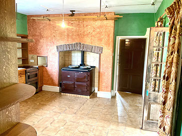 with flagstone floor, original baking oven, adjacent recessed Toilet with chain-pull cistern, one step and a door to the yard area and a door to the rear of the dwelling. This room is open to the apex of the roof with an average height of 15’9” approx.