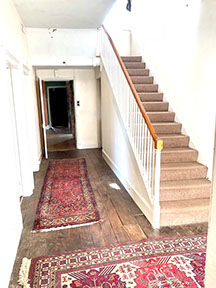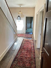 with Elm boarded floor, cloaks hanging space, servants’ bells, one single panel radiator, two single power points and a telephone point. A wide staircase leads off. A door gives access to an Understairs Cupboard, the original access steps to the Cellar currently being boarded over, the cellar being accessible externally from the courtyard.
