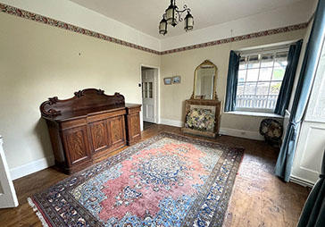 enjoying front (S) and side (W) aspects and having a suspended board floor, feature fireplace with an inset Baxi type grate, sash windows with original shutters, two double and one single panel radiators, one double and one single power points.