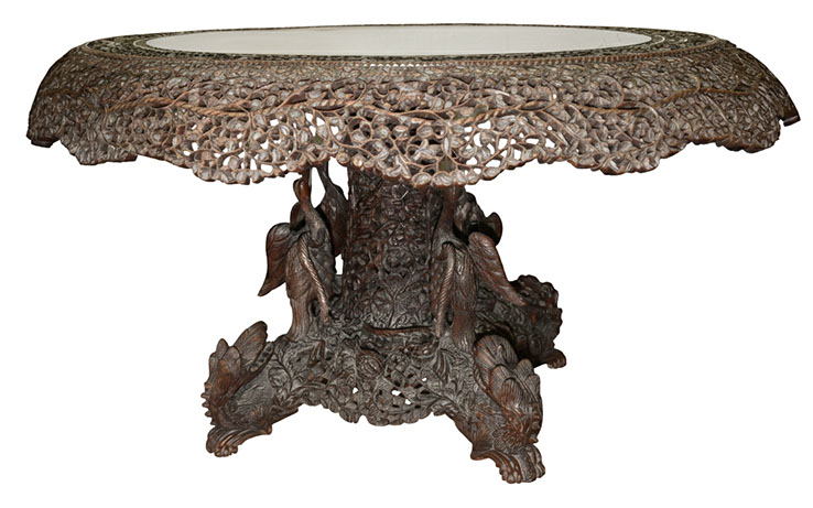 Briefly including: FURNITURE incl. Unusual Burmese Centre Table on heavy base with dragon legs and bird figures, the 60” top profusely carved with animals and foliage; Substantial 8’10” Pine Dresser with glazed top, 19th c. Mahogany triple Wardrobe, Art nouveau glazed Bookcase on Cupboard, Satinwood mirrorback, pr. elegant Armchairs, Stylish Danish style Wardrobe, Oak Longcase Clocks, etc. PAINTINGS incl. Sketch (unfinished) of Christchurch College, David Cox Watercolour, Limited edition Prints, etc. METALS incl. Silver Tray, S. cigarette boxes, Canteens of Cutlery, Geo. Jenson candlesticks, etc, JEWELLERY incl. 9ct. Cufflinks, 9ct. belcher neck Chains, Gold stud earrings, etc. CHINA incl Henrik Allert & Jie Gantofta wall Plaques, Lladro figures, Royal Albert OCR Dinner/tea service, Luneville dinner service, vintage teasets, etc. GLASS incl. Paperweights, art glass, etc. MISCELLANEA incl, George V & VI dome top cast iron Post Boxes and other mail memorabilia, Chinoiserie lacquered Games Box, Oak tambour fronted Filing Cabinet, Brass Carriage Clock in travelling case, Model of Oriental Princess sailing ship & other cased ships, Aspreys Crocodile skin Wallet, Militaria incl. Kukri knife, Bond of London pocket Pistol, Coldstream Guards uniforms, Royal Fusiliers brass, etc. 1900 Gold Sovereign, Stamp Albums, etc.