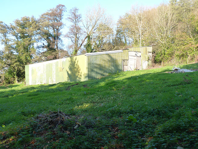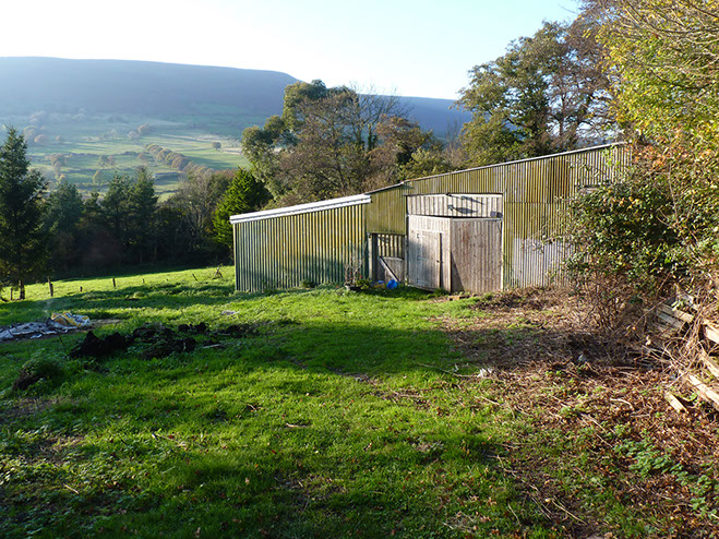 To the opposite side of the driveway spur, and with separate vehicular access a little further up the driveaway, is a grassed enclosure with a detached General Purpose Building 60’ x 58’ approximately of pole-barn type construction with a mono-pitch corrugated iron clad roof and side-cladding. There is a double doored entrance, the earth floor is on two principal levels, the upper section including two loose boxes, whilst the lower section is sub-divided by concrete blockwork walls into ten rearing pens.