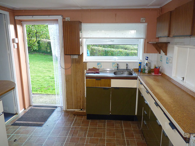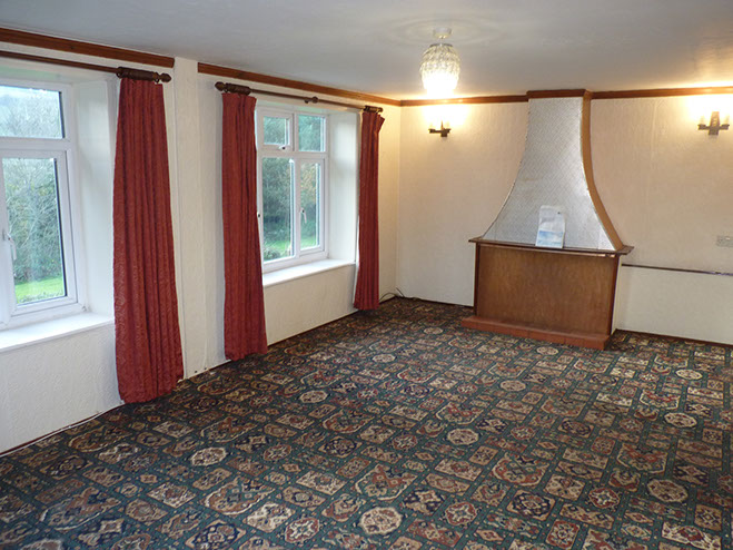 An external access at the rear leads into a cavity block-work EXTENSION, which requires finishing works including plastering, but with the first fix of plumbing and electrics in situ. There is a half-glazed door into a LOBBY 7’6” x 4’ with a concrete floor, a door to BEDROOM (3) 10’10” x 10’4” with two aspects, again having a concrete floor and a timber-clad ceiling. There is provision for four double power points.